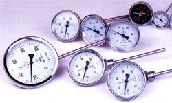 | 雙金屬溫度計是基于繞制成環性彎曲狀的雙金屬片組成。一端受熱膨脹時,帶動指針旋轉,工作儀表便顯示出熱電勢所應的溫度值。 |